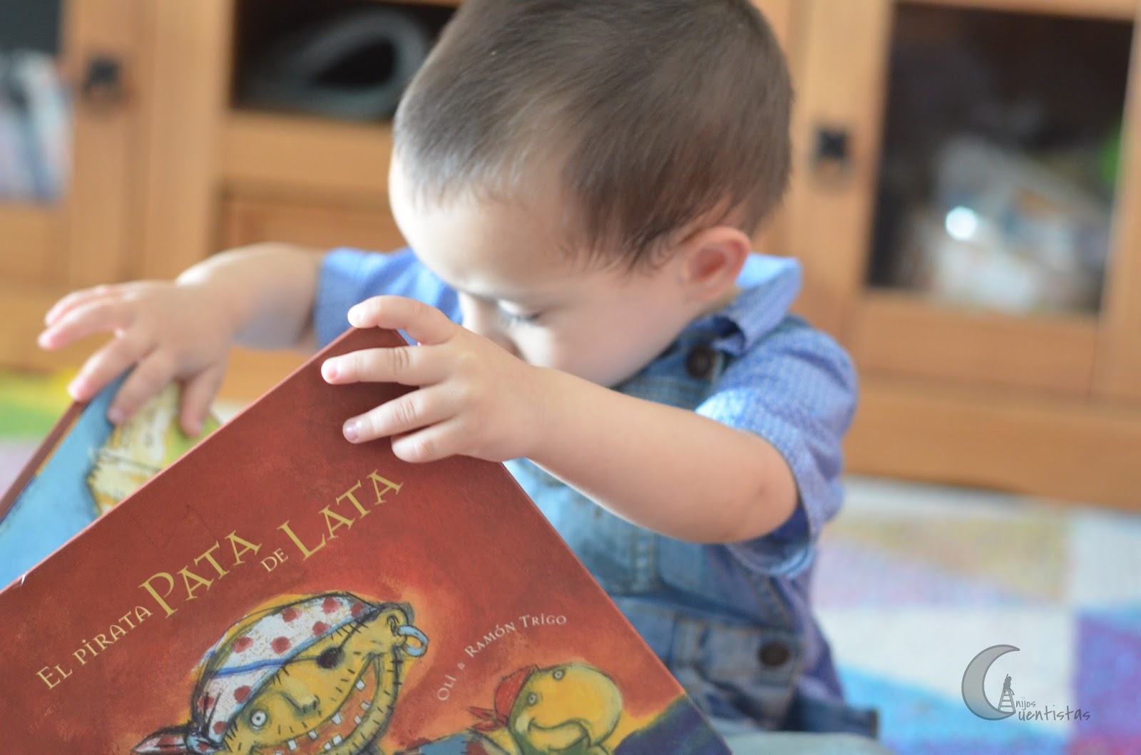 - El pirata pata de lata: Lo cogí por que un día jugando, se puso unas gafas a las que le faltaban un cristal y le dije que era un pirata. Así estuvo unos días diciéndonos que era un pirata, aunque supongo que no tenía ni idea de lo que era eso. Así que encontré este en la biblioteca y pensé que era perfecto. Es un álbum ilustrado con rimas e ilustraciones muy simpáticas. Nos presenta al Pirata pata de lata, y como persigue su sueño de ser pirata. Creo que ayuda también a los canijos a ambientarse en el mundo pirata sin llegar a la violencia.