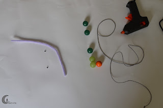 – Material: cuentas de colores, cuerda, ojos, limpiapipas, tijeras y pistola de silicona.