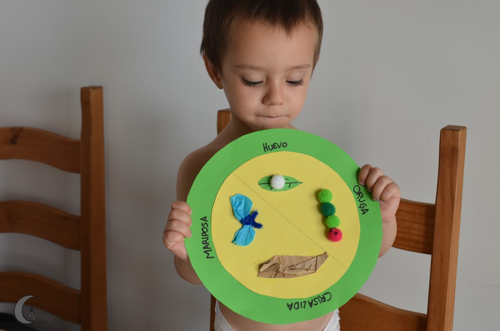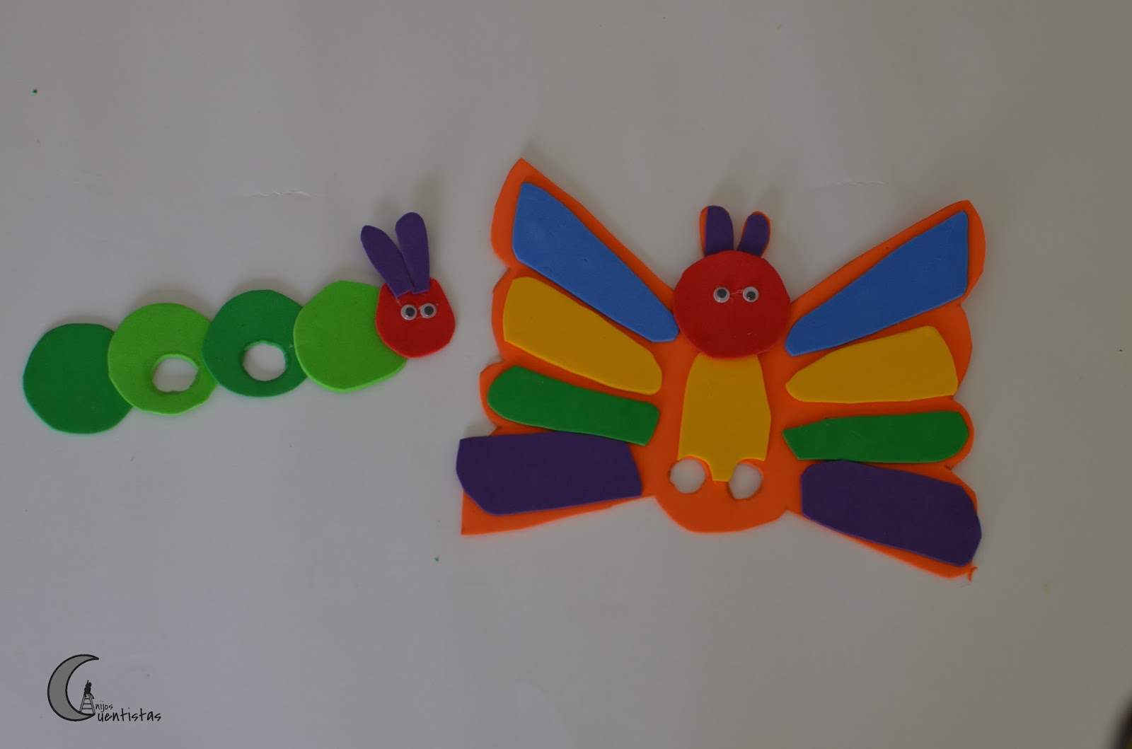 – para la crisálida simplemente le dimos forma al papel y lo pegamos